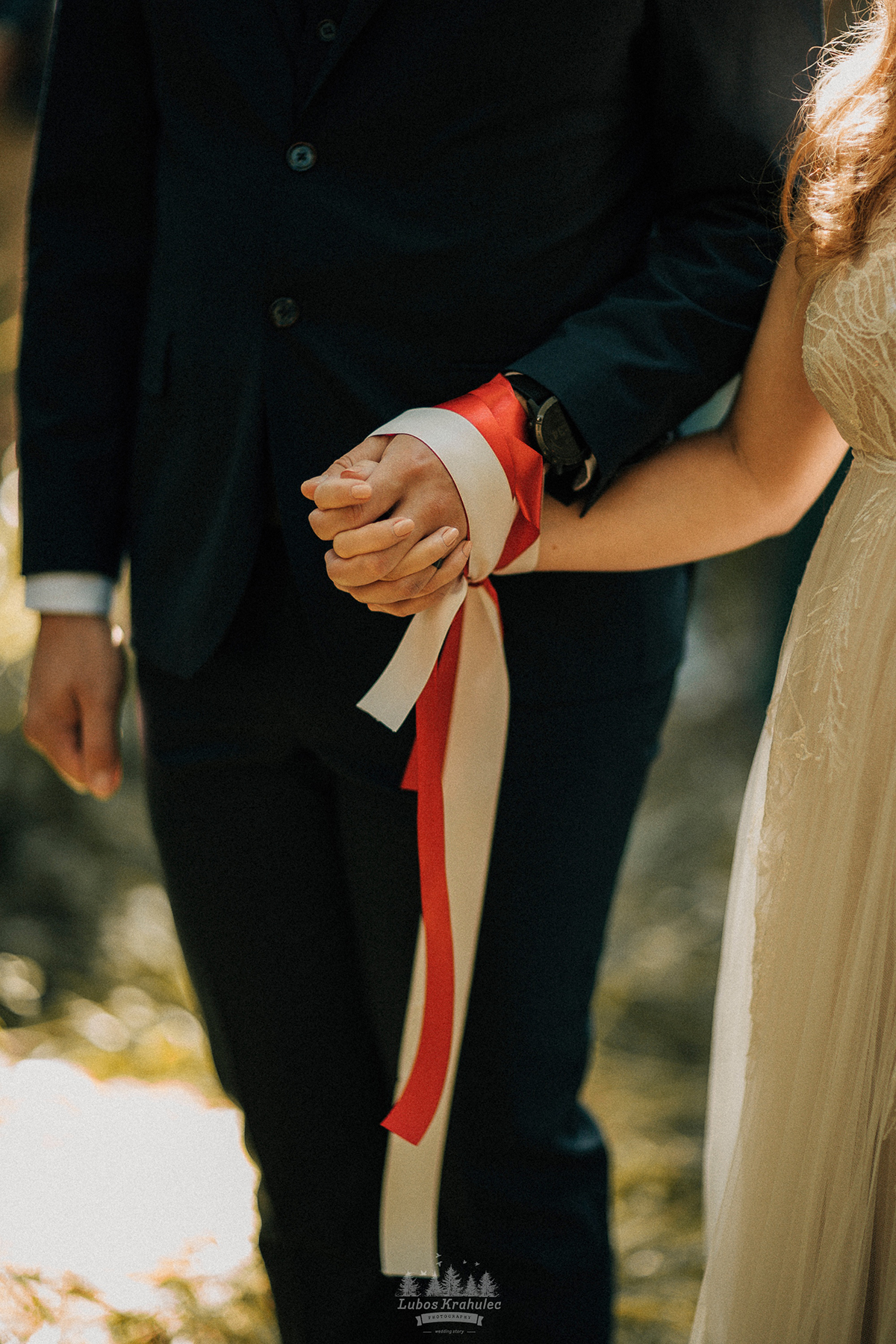 Handfasting je hlboký a jedinečný akt spojenia, ktorý sa vždy prispôsobuje páru a jeho životnej ceste. Symbol zväzovania rúk môže mať mnoho podôb od farebných stúh, ktoré prepájajú mužský a ženský princíp, cez karetkou tkané pásy, aké používali naši slovanskí predkovia, až po vyšívaný ľan s rodovými symbolmi.